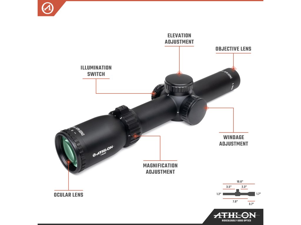 Athlon MIDAS BTR GEN2 1-6×24 je variabilný puškohľad s nízkym profilom zväčšenia 1-6×, ktorý ponúka rýchle zacieľovanie na krátke až stredné vzdialenosti, osvetlený retikel ATSR4 v druhej ohniskovej rovine (SFP) a pevný 30 mm tubus. Tento model je navrhnutý pre športové, taktické aj lovecké použitie, kde je dôležitá rovnováha medzi univerzálnosťou, rýchlosťou a presnosťou.