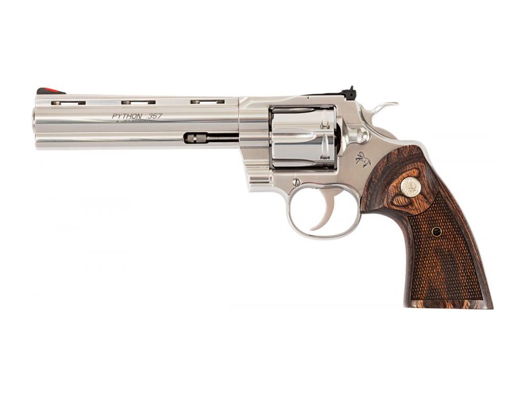 COLT Python .357 Magnum, 6" Barrel má odolný oceľový rám a ergonomickú pažbu. Hlaveň 6" je optimalizovaná pre presnú streľbu na väčšie vzdialenosti.