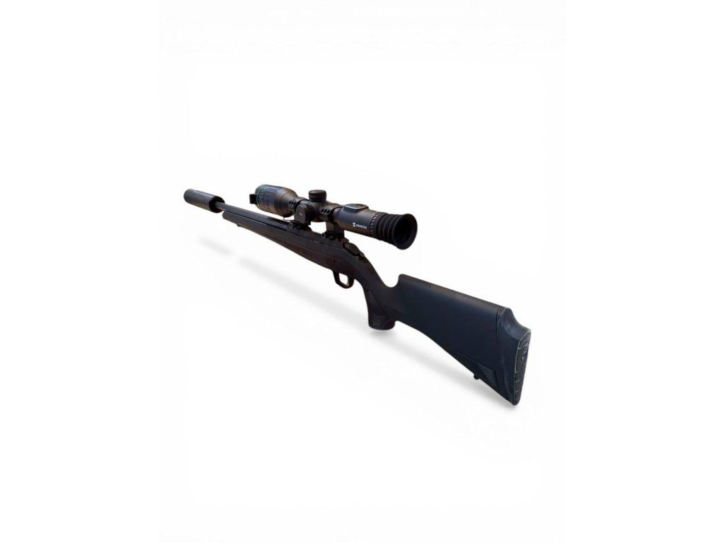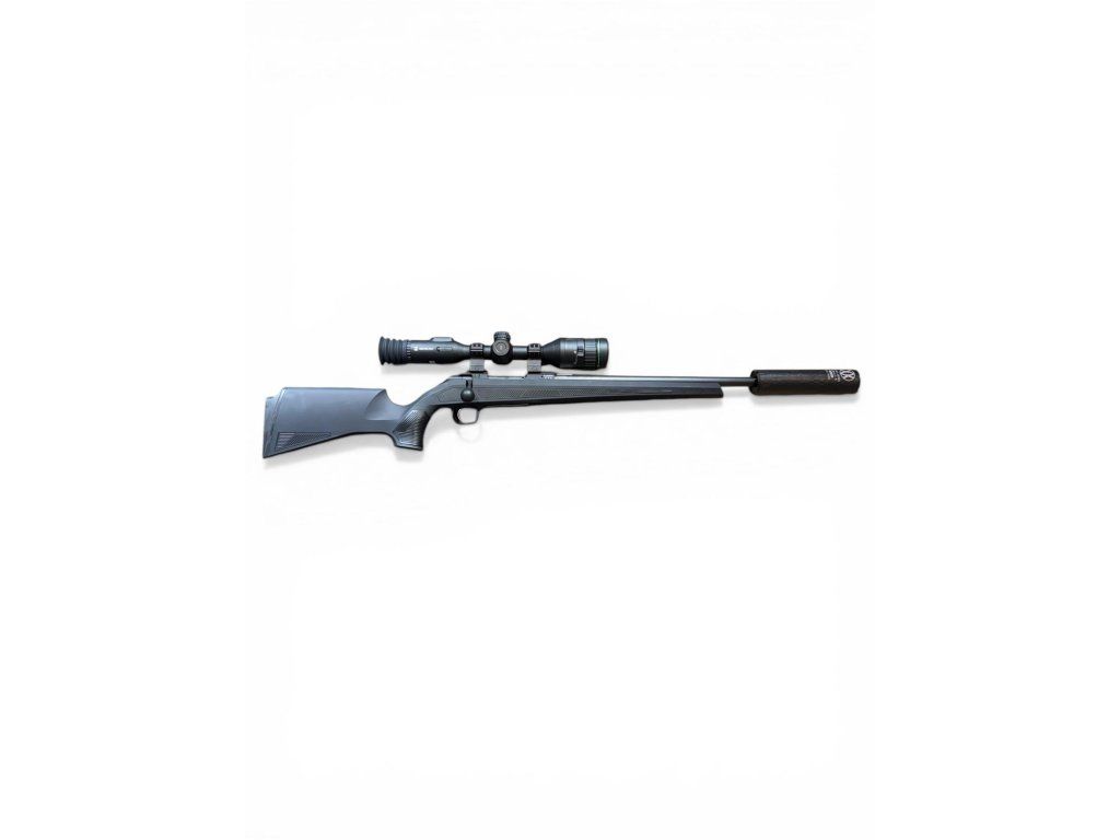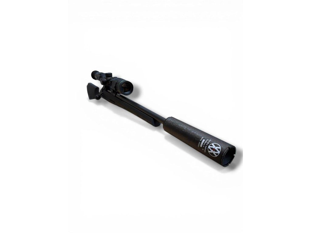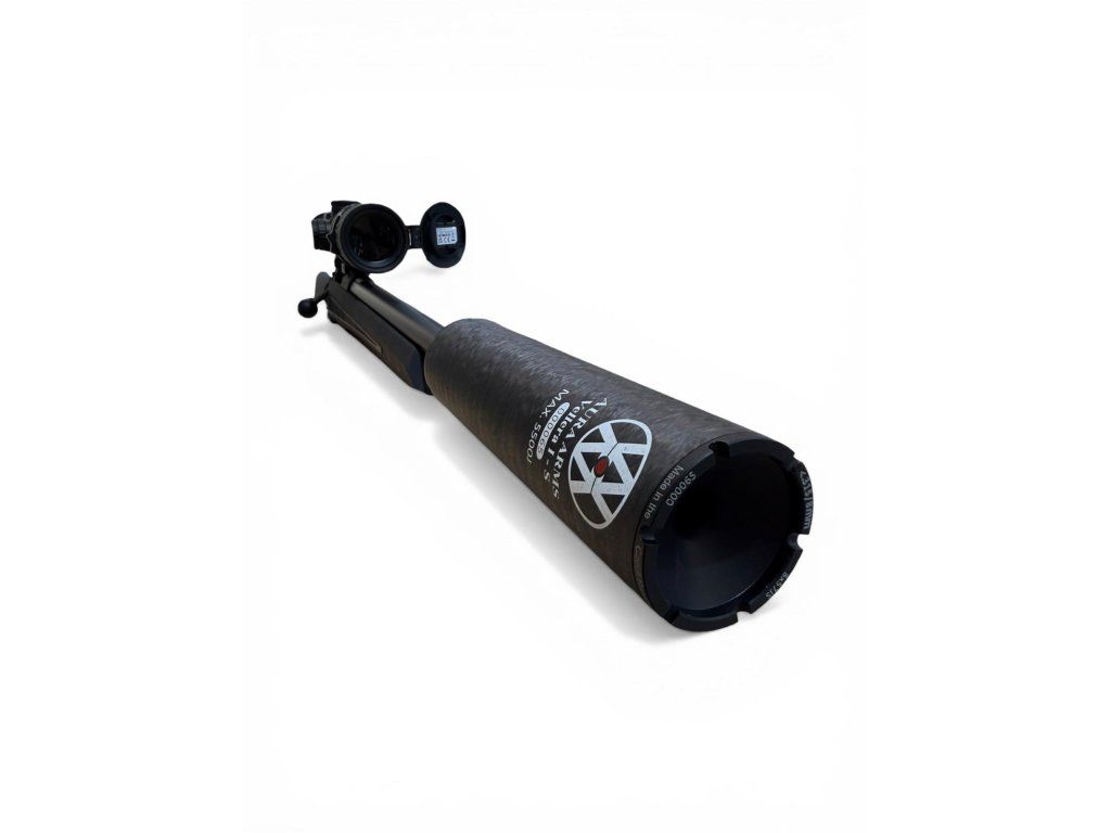 Tretím prvkom zostavy je AURA ARMS VELLERA I-S Carbon, výkonný tlmič hluku s ľahkou karbonovou konštrukciou. Tlmič znižuje hluk výstrelu, spätný ráz aj záblesk, čím zvyšuje komfort streľby, zlepšuje kontrolu zbrane a prispieva k lepšiemu zážitku pri dlhšom používaní v teréne.