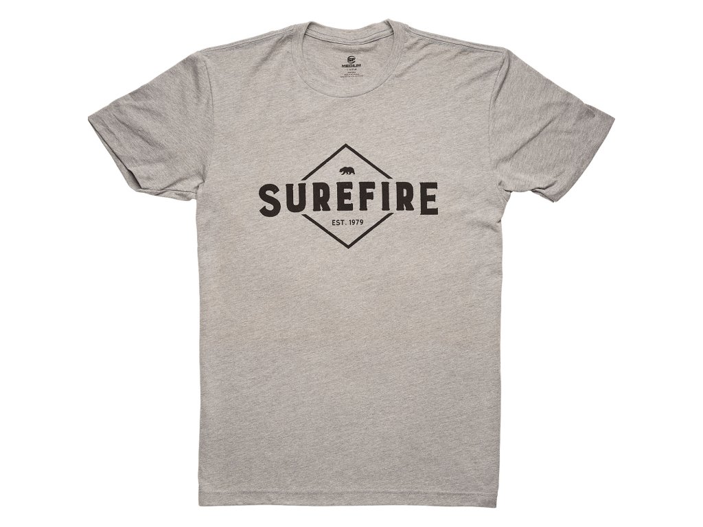 Pohodlné tričko SureFire Outdoors v atraktívnej farbe Athletic Gray. Vyrobené z mäkkej, priedušnej bavlny s moderným strihom a štýlovou potlačou SureFire Outdoors na hrudi. Ideálne pre voľný čas, tréning aj strelecké aktivity.