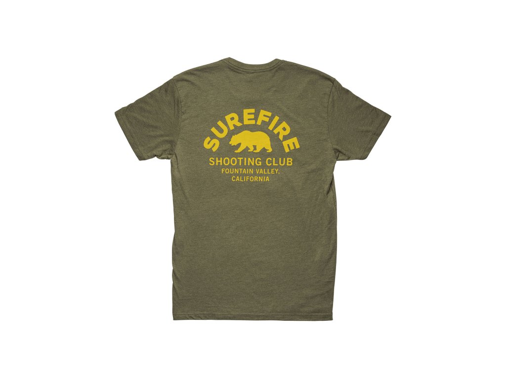 Štýlové tričko SureFire Shooting Club v odtieni Military Green (MG). Vyrobené z mäkkej, priedušnej bavlny s originálnou potlačou SureFire Shooting Club na hrudi. Ideálne pre strelcov, nadšencov taktiky aj bežné nosenie.